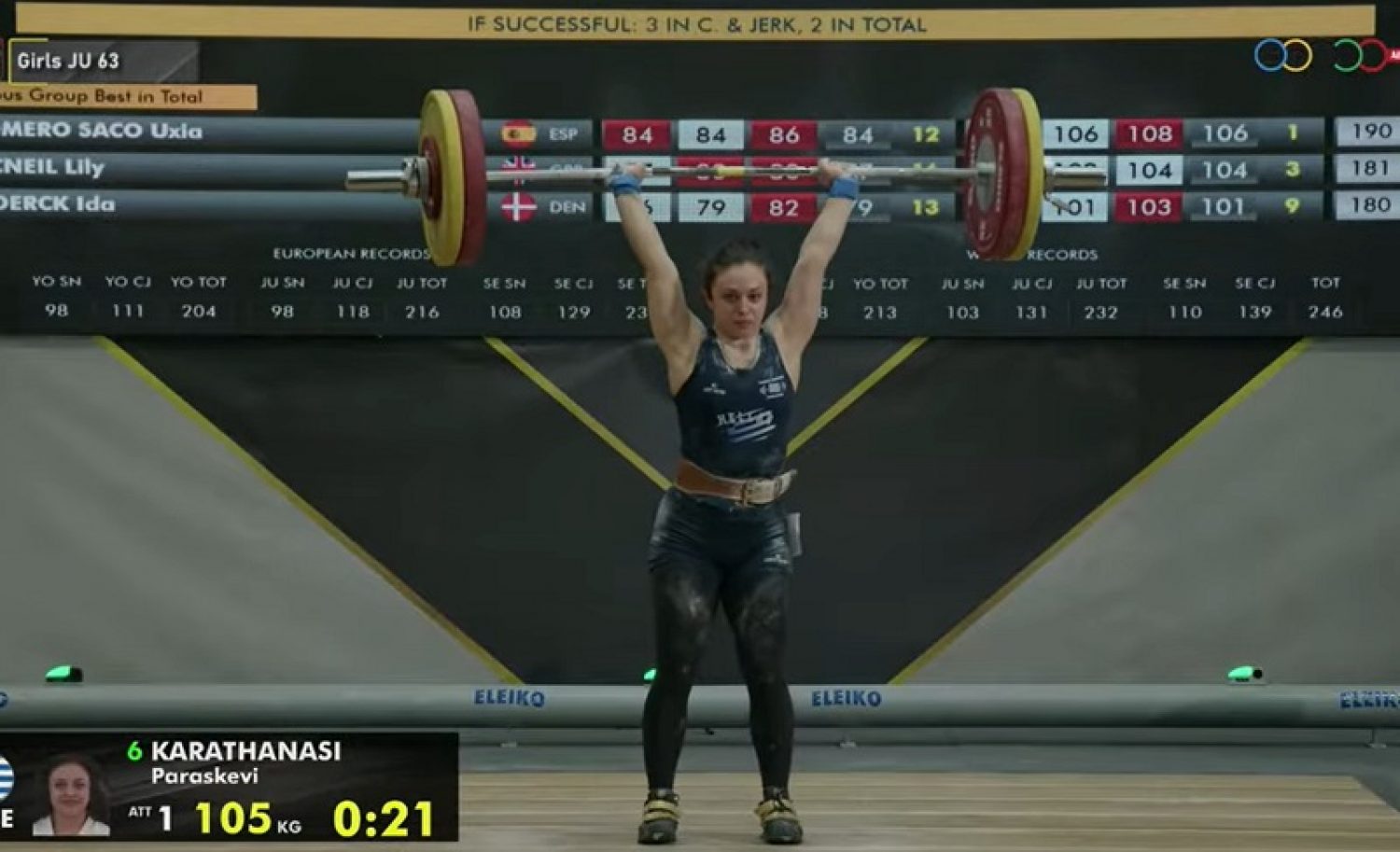 Η 18χρονη αρσιβαρίστρια με την υπέροχη εμφάνιση της επιβεβαίωσε το σπουδαίο ταλέντο της και ταυτόχρονα πρόσφερε νέες στιγμές χαράς στην ελληνική άρση βαρών που σε αυτό το Ευρωπαϊκό Πρωτάθλημα Junior και U23 ήδη μετράει τέσσερα μετάλλια, με τα δυο ασημένια και το χάλκινο της Μαρίας Στρατουδάκη και το ασημένιο του Κωνσταντίνου Λαμπρίδη.