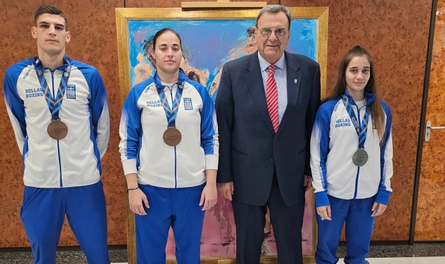 Ο Πρόεδρος της Ελληνικής Ολυμπιακής Επιτροπής Ισίδωρος Κούβελος, υποδέχθηκε τα παιδιά που κατέκτησαν μετάλλια στο Ευρωπαϊκό Πρωτάθλημα πυγμαχίας U23, την «ασημένια» Αντωνία Γιαννακοπούλου και τους «χάλκινους» Βασιλική Σταυρίδου και Ζαχαρία Μυλωνά.