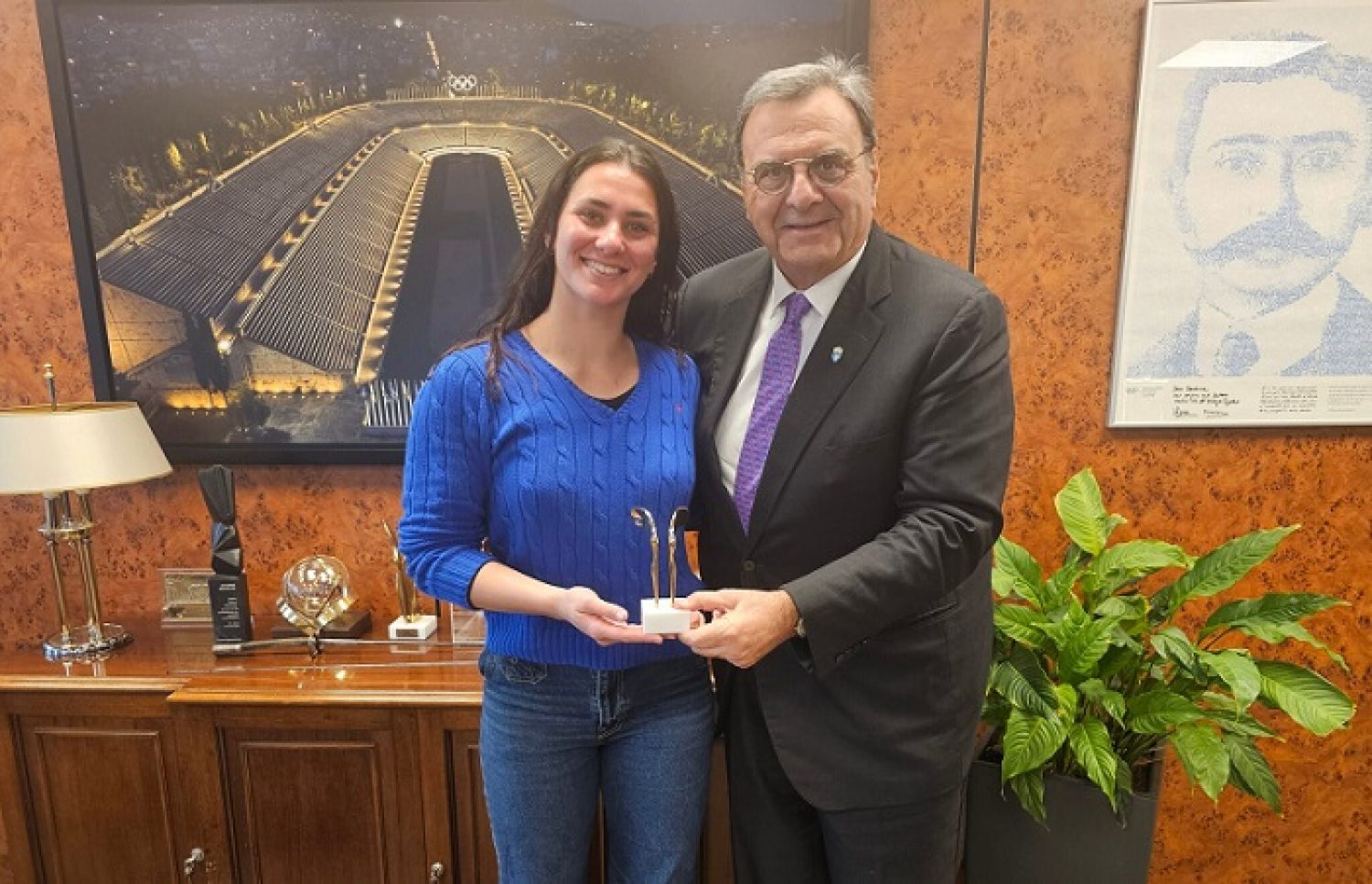 Ο κ. Κούβελος αφού καλωσόρισε την 20χρονη πολίστρια της είπε: «Σου αξίζουν θερμά συγχαρητήρια για τα επιτεύγματα σου μέσα στη χρονιά. Η βράβευση σου ως καλύτερης πολίστριας στον κόσμο αντανακλά στο σύνολο της ελληνικής υδατοσφαίρισης και σε όλη την Εθνική Ομάδα γυναικών που έφτασε στην κορυφή του Κόσμου. Ήδη αποτελείς αθλήτρια – πρότυπο για όλα τα νέα παιδιά και θέλω να ξέρεις ότι η Ελληνική Ολυμπιακή Επιτροπή θα είναι στο πλευρό σου σε ό,τι χρειαστείς.»