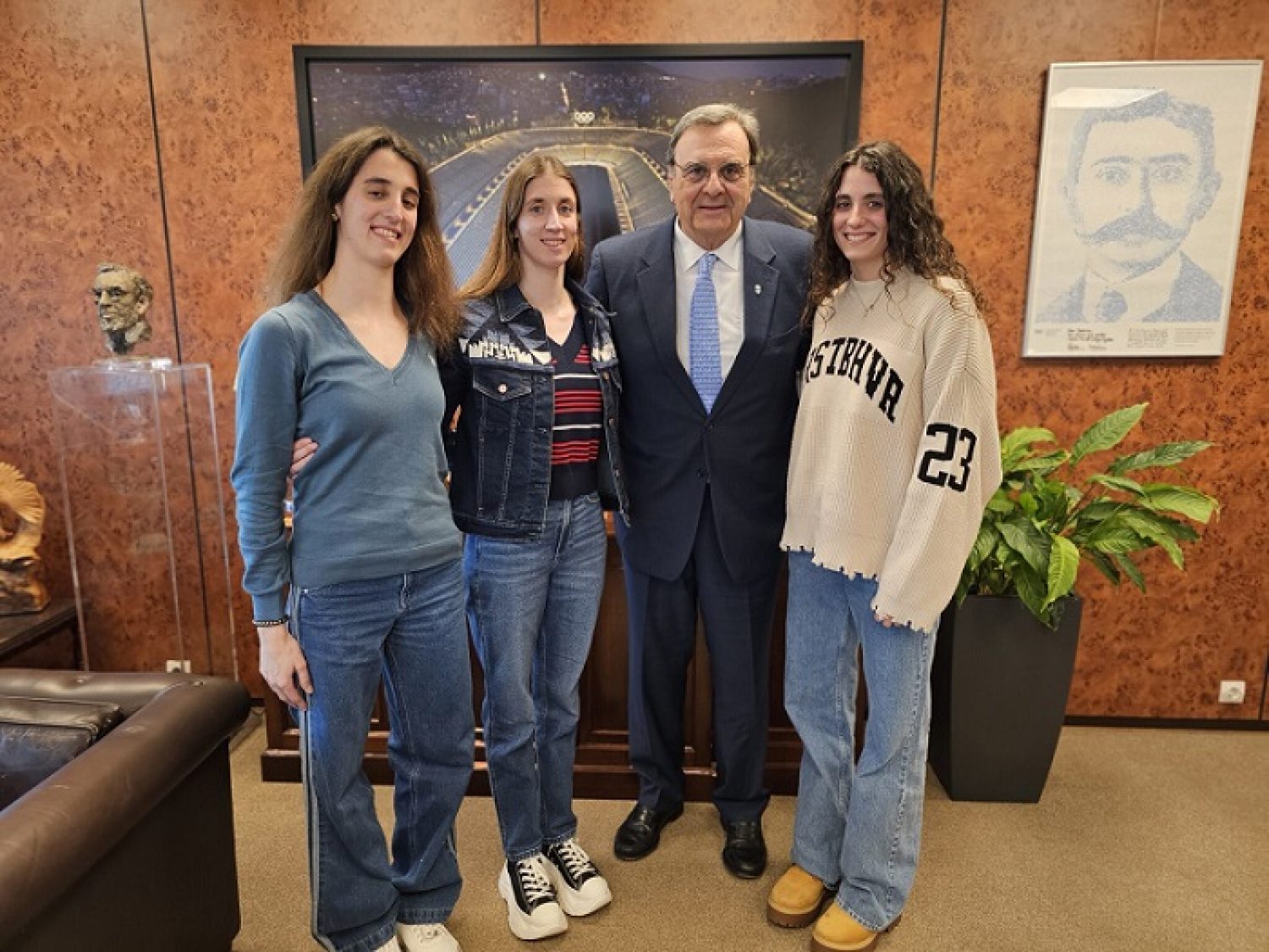 Απευθυνόμενος στις τρίδυμες αδερφές ο κ. Κούβελος τους είπε: «Μας δώσατε πολύ μεγάλη χαρά που γυρίσατε. Η επιστροφή σας είναι πολύ σημαντική, πρώτα απ΄όλα για σας, αλλά και για την πατρίδα, την Ελληνική Ολυμπιακή Επιτροπή, για όλο το ελληνικό αθλητισμό. Αυτό είναι το σπίτι σας, αυτή είναι η οικογένειά σας. Η Ελληνική Ολυμπιακή Επιτροπή αλλά και η Κολυμβητική Ομοσπονδία είναι τα σπίτια σας, έτσι πρέπει να νιώθετε. Σας αγκαλιάζουμε, σας αγαπάμε, σας θέλουμε κοντά μας», είπε ο Πρόεδρος της Ελληνικής Ολυμπιακής Επιτροπής και πρόσθεσε: «Eίμαι ένα χρόνο Προέδρος της Eλληνικής Ολυμπιακής Επιτροπής, αλλά η μεγαλύτερη συγκίνηση είναι αυτή που νιώθω σήμερα εδώ μαζί. Και να ξέρετε ότι θα κάνω ότι περνάει από το χέρι μου για να μην σας λείψει τίποτα και να αφοσιωθείτε στον πρωταθλητισμό.»