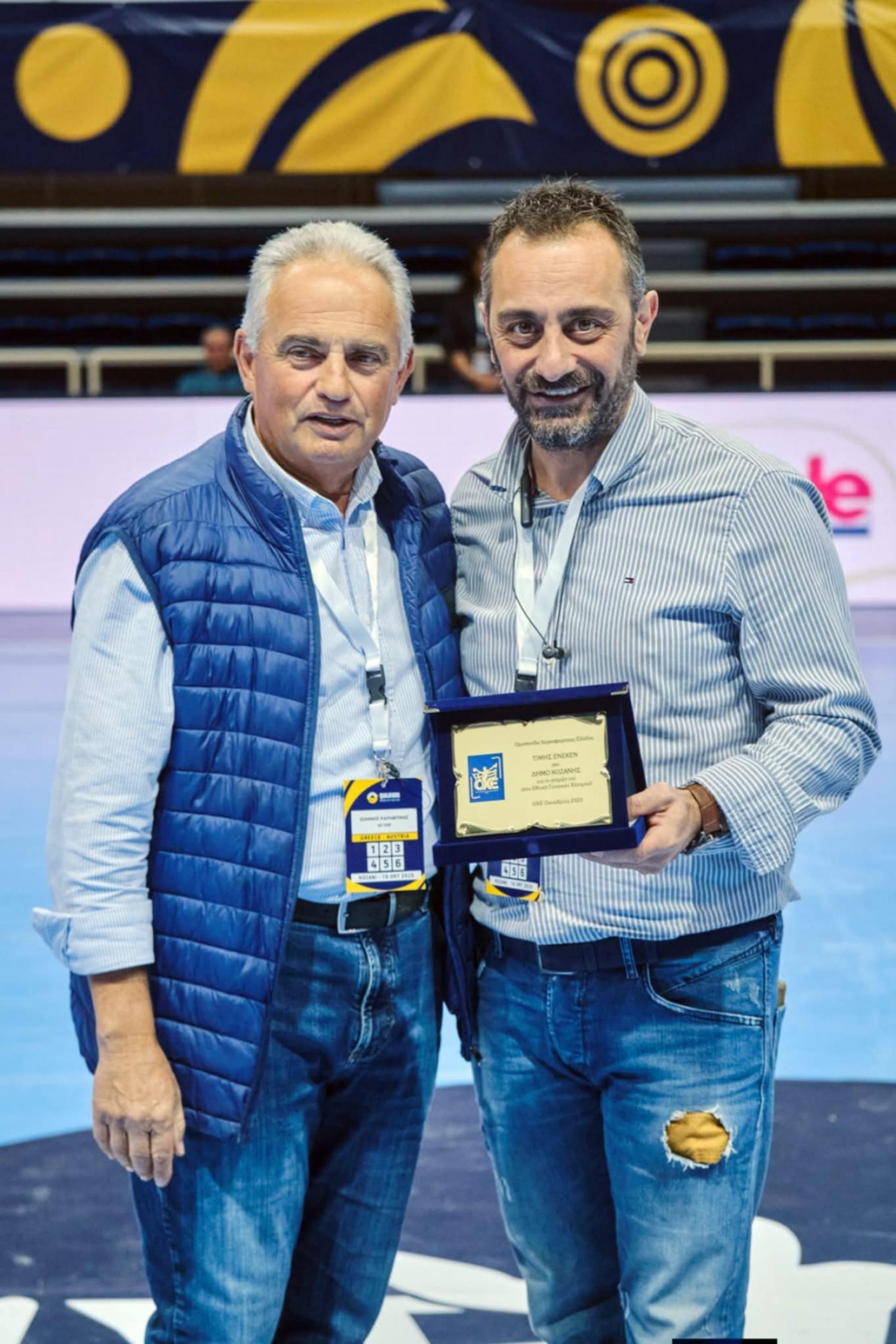 H OXE στο ημίχρονο του αγώνα Ελλάδα- Αυστρία βράβευσε τον Αντιπεριφερειάρχη Οικονομικών Δυτικής Μακεδονίας Λύσσανδρο Μεταξά, τον Αντιδήμαρχο Αθλητισμού Κοζάνης Γιάννη Ιωαννίδη και τον χορηγό Αγαμέμνων Πιτένη.