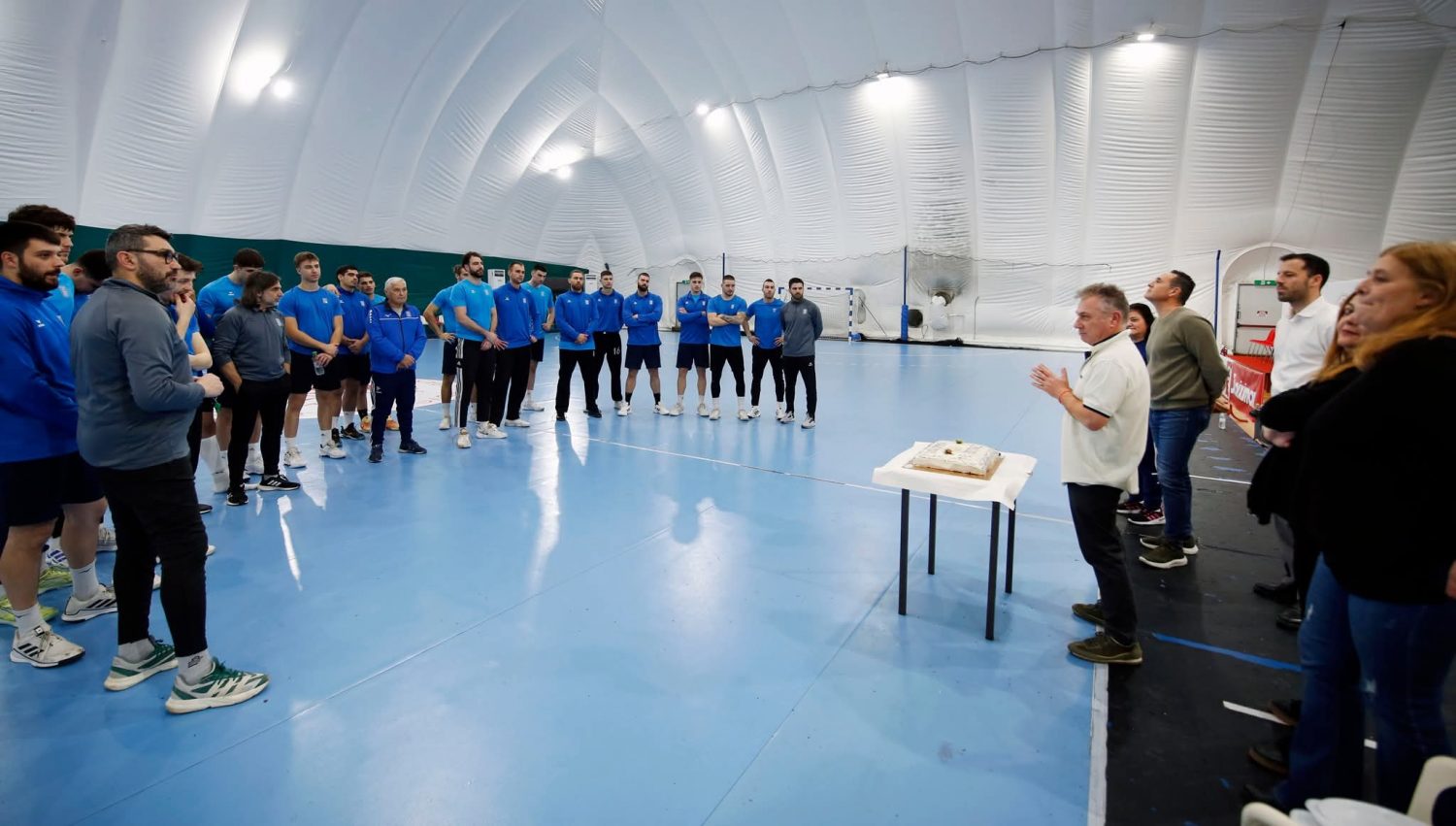 Με την ευκαιρία του καμπ προετοιμασίας στο γήπεδο χάντμπολ του ΣΕΦ για το διεθνές τουρνουά της Ολλανδίας (8-10 Ιανουαρίου), η Εθνική Ανδρών έκοψε τη αγιοβασιλόπιτα του 2026.