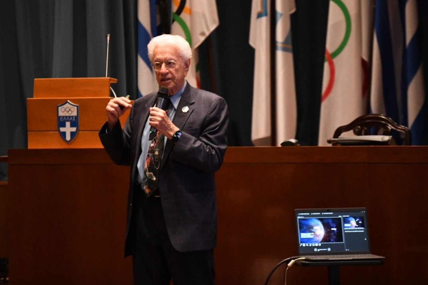 Στην εκδήλωση που διοργάνωσαν η Επιτροπή «Αθλητισμός και Περιβάλλον» της ΕΟΕ, Διεθνής Ολυμπιακή Ακαδημία και η Εθνική Ολυμπιακή Ακαδημία, o Επίτιμος Έφορος του Διαστημικού Τμήματος του Πανεπιστημίου John Hopkins (ΗΠΑ) και μέλος της Ακαδημίας Αθηνών, μίλησε για το σύμπαν, το ηλιακό σύστημα και φυσικά τη Γη, τονίζοντας τη σύνδεση της βιωσιμότητας με τις Ολυμπιακές Αξίες.