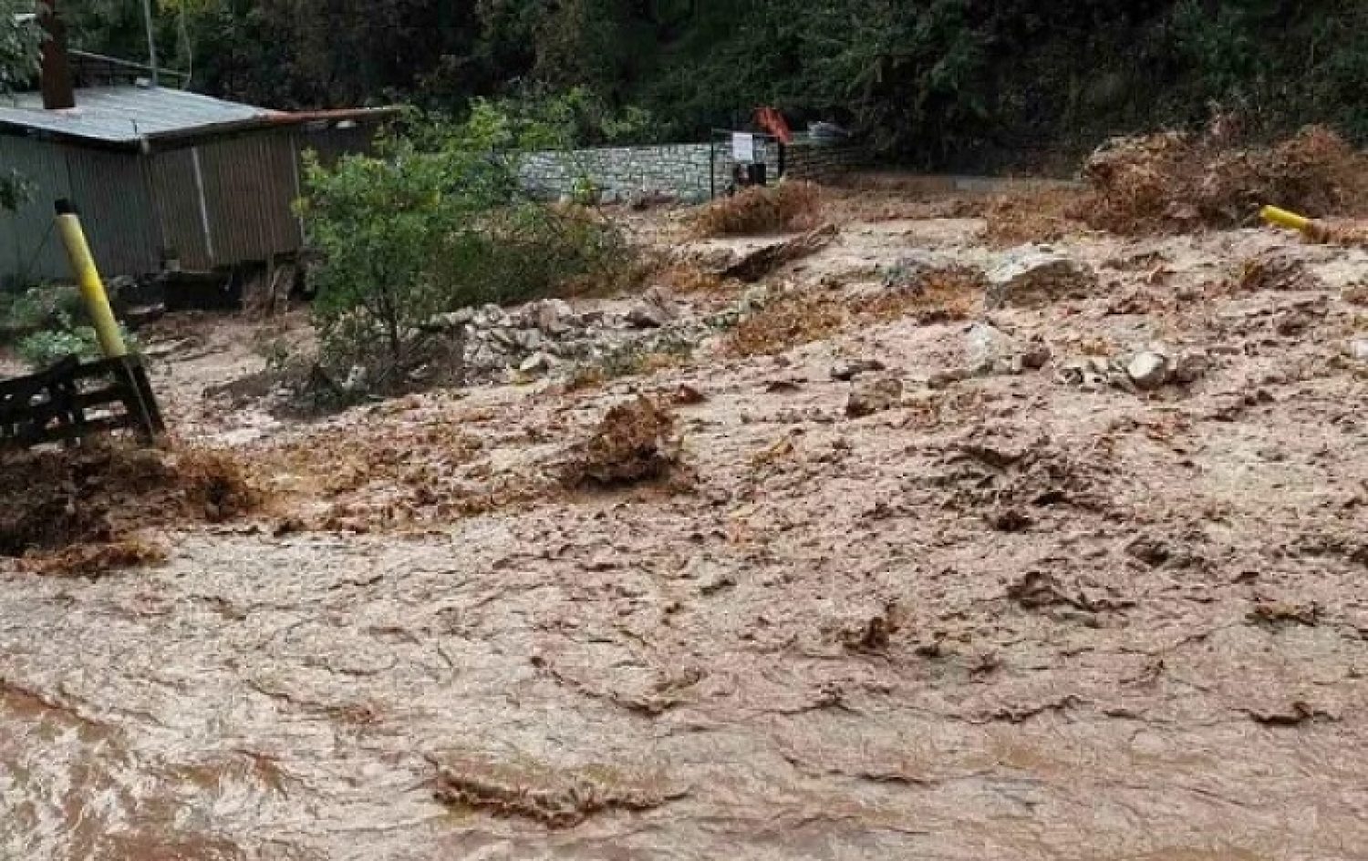 Ξεροπόταμος της περιοχής φούσκωσε από την ένταση της βροχής, με αποτέλεσμα να υπερχειλίσει και να προκαλέσει εκτεταμένες ζημιές.