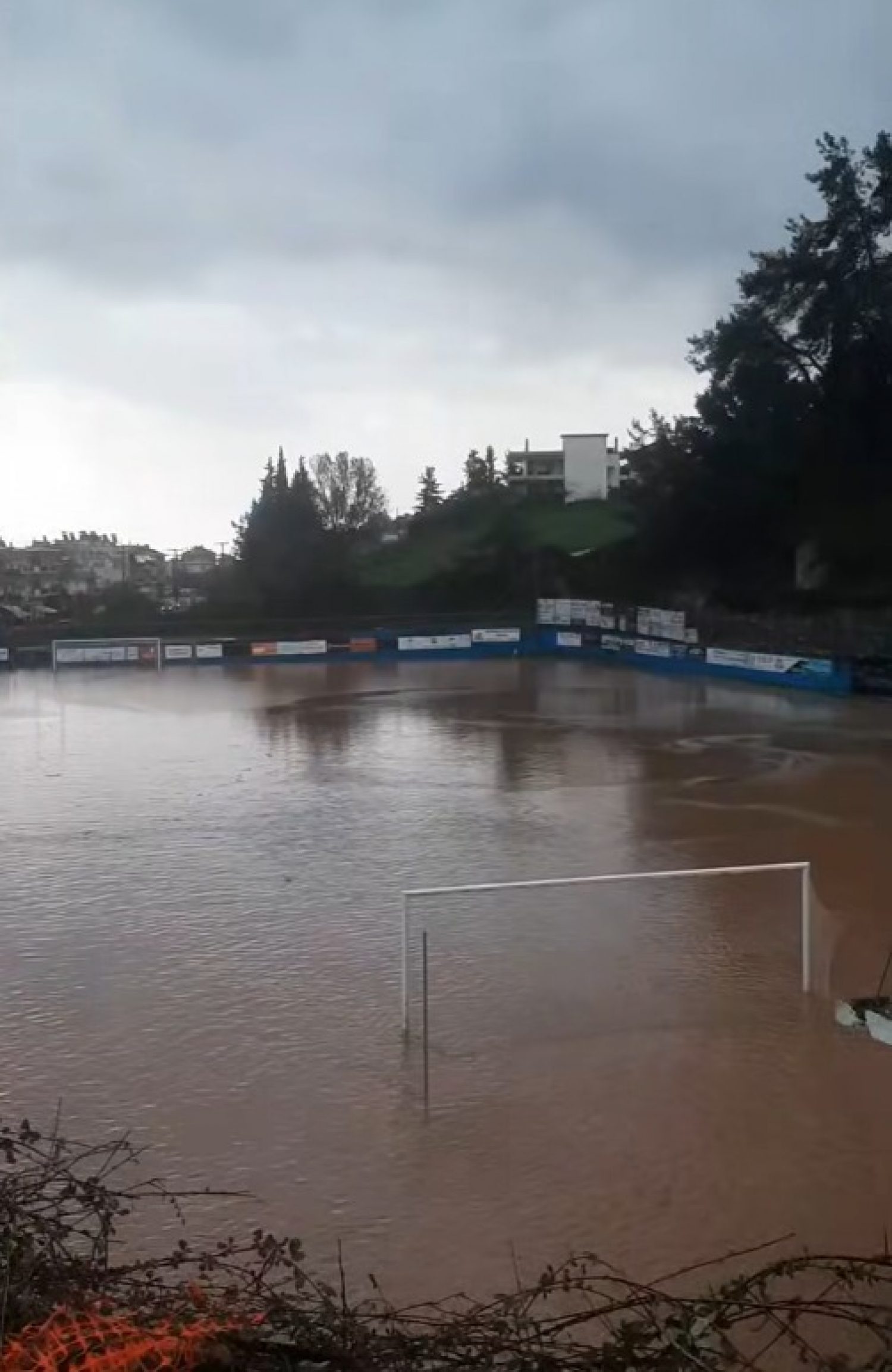 Το νερό έχει μετατρέψει σε λίμνη και το γήπεδο , καταγράφηκαν πλημμύρες σε καταστήματα και σπίτια, ενώ η αστυνομία διευθετεί την κυκλοφορία προς παρακείμενες οδούς.