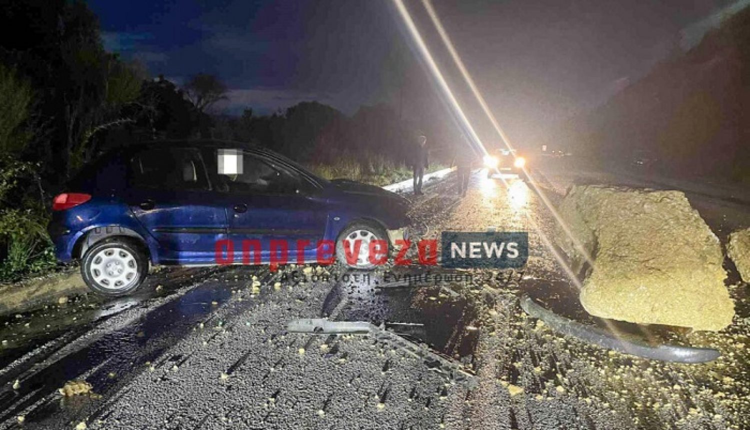 Σύμφωνα με τις πρώτες πληροφορίες, ο οδηγός ενός Ι.Χ. αυτοκινήτου, που κινούνταν πιθανότατα προς Πρέβεζα, δεν πρόλαβε να αντιδράσει όταν μεγάλοι βράχοι είχαν πέσει στο οδόστρωμα. Το όχημα προσέκρουσε πάνω τους, με αποτέλεσμα να ακινητοποιηθεί στη μέση του δρόμου. Ελάχιστα δευτερόλεπτα αργότερα, ένα ημιφορτηγάκι που ακολουθούσε την ίδια κατεύθυνση αντιλήφθηκε το ακινητοποιημένο Ι.Χ. την τελευταία στιγμή. Στην προσπάθειά του να το αποφύγει, ο οδηγός έκανε έναν απότομο ελιγμό, με αποτέλεσμα το όχημα να εκτραπεί της πορείας του και να καταλήξει σε παρακείμενη χαράδρα.