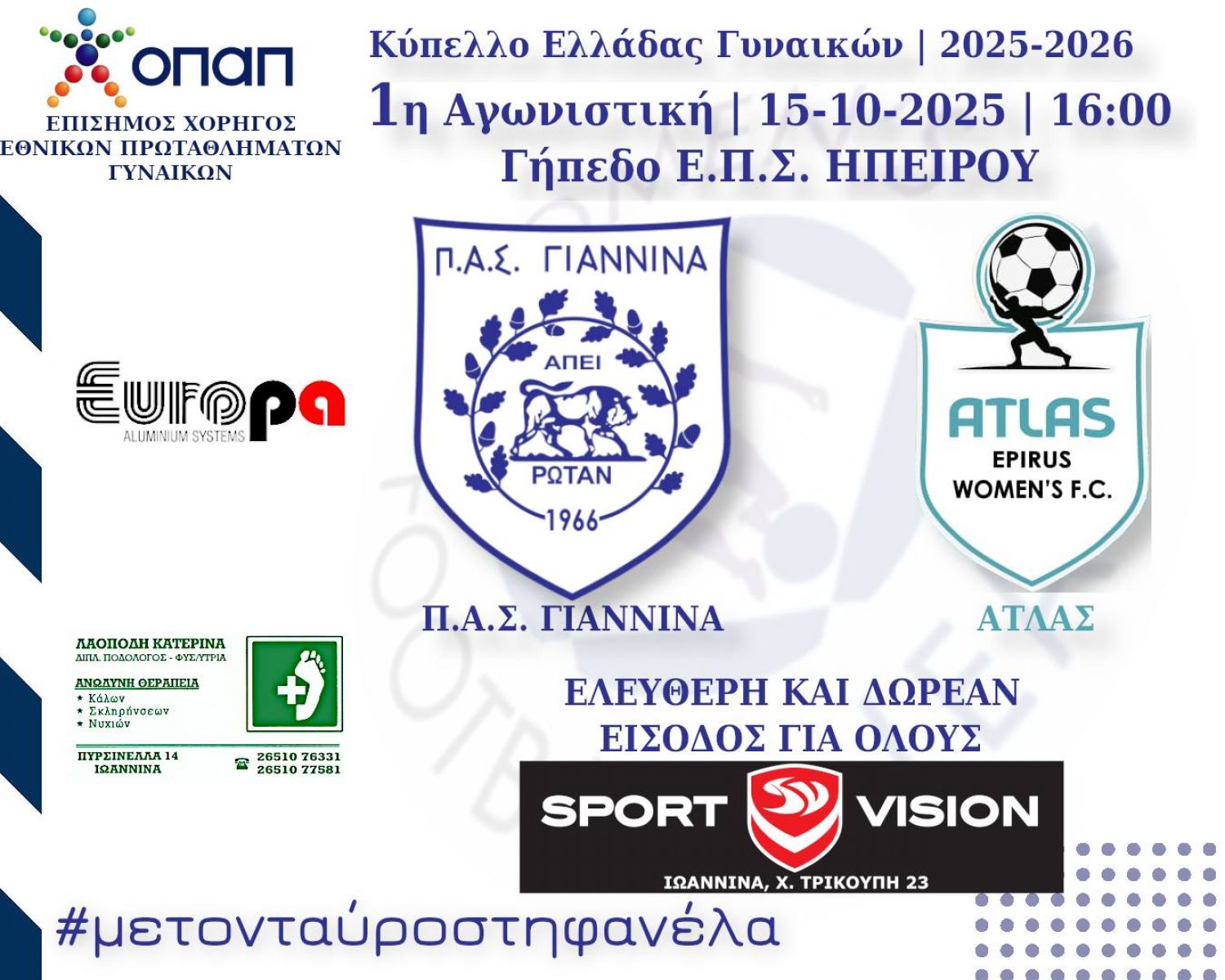 "Ο αγώνας έχει ελεύθερη και δωρεάν είσοδο για όλες και όλους φίλους και φίλες του Ποδοσφαίρου!", ενημερώνει ο ΠΑΣ Γιάννινα.
