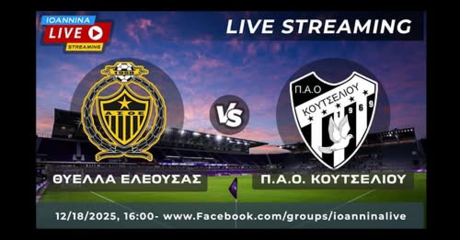 Παρακολουθήστε από το Ioannina Live, τον αγώνα, Θύελλα Ελεούσας-ΠΑΟ Κουτσελιού.