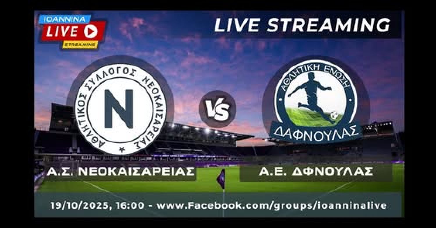 Παρακολουθήστε σε live streaming από το Ioannina Live, τον αγώνα Νεοκαισάρεια-ΑΕ Δαφνούλας.