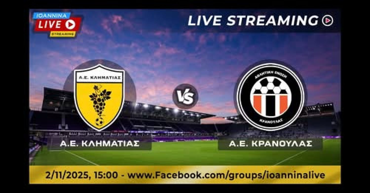 Παρακολουθήστε από το Ioannina Live, τον αγώνα της ΑΕ Κληματιάς με την ΑΕ Κρανούλας.