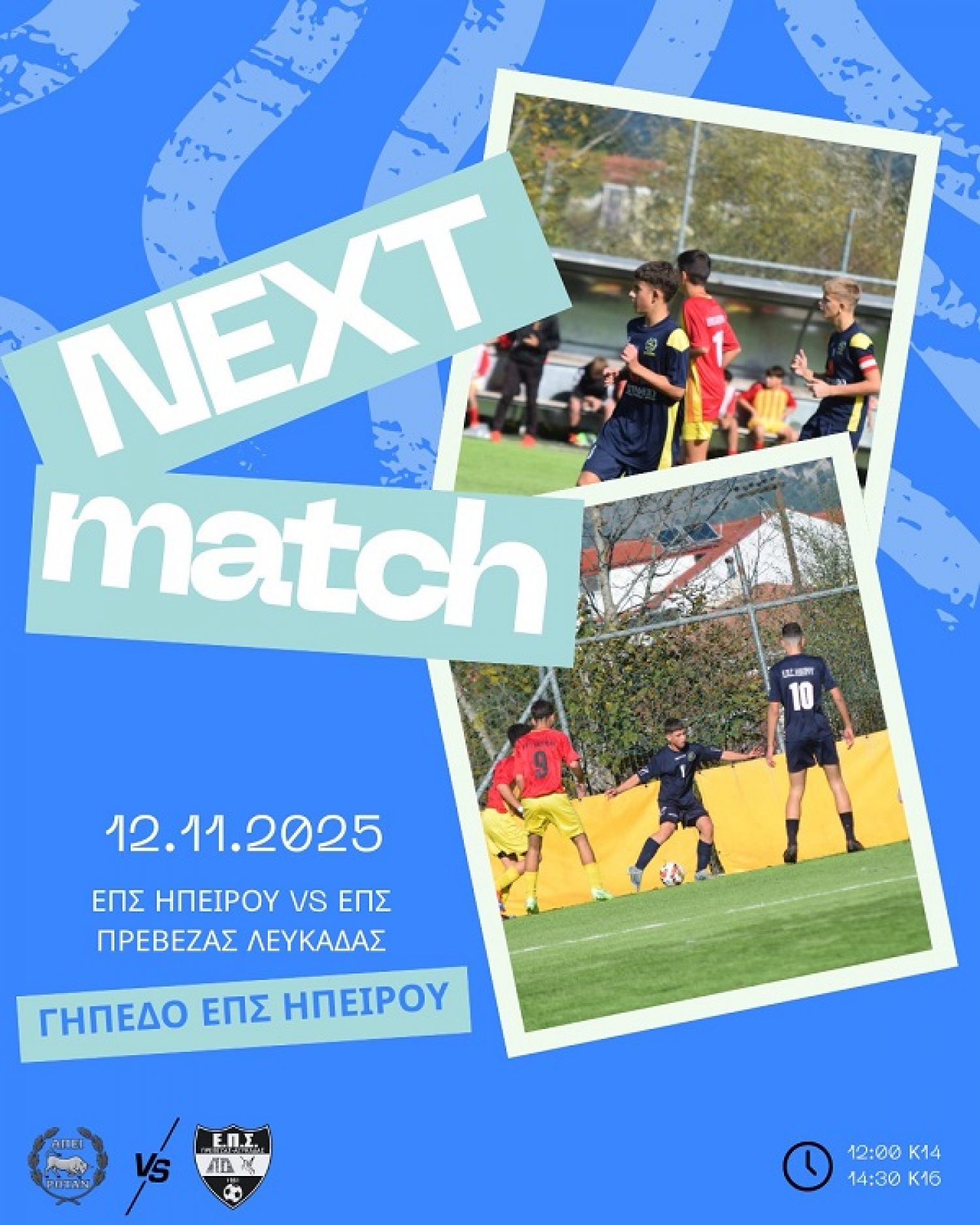 Τις αντίστοιχες Μικτές Ομάδες Κ14 και Κ16 της ΕΠΣ Πρέβεζας-Λευκάδας αντιμετωπίζει σήμερα η ΕΠΣ Ηπείρου.