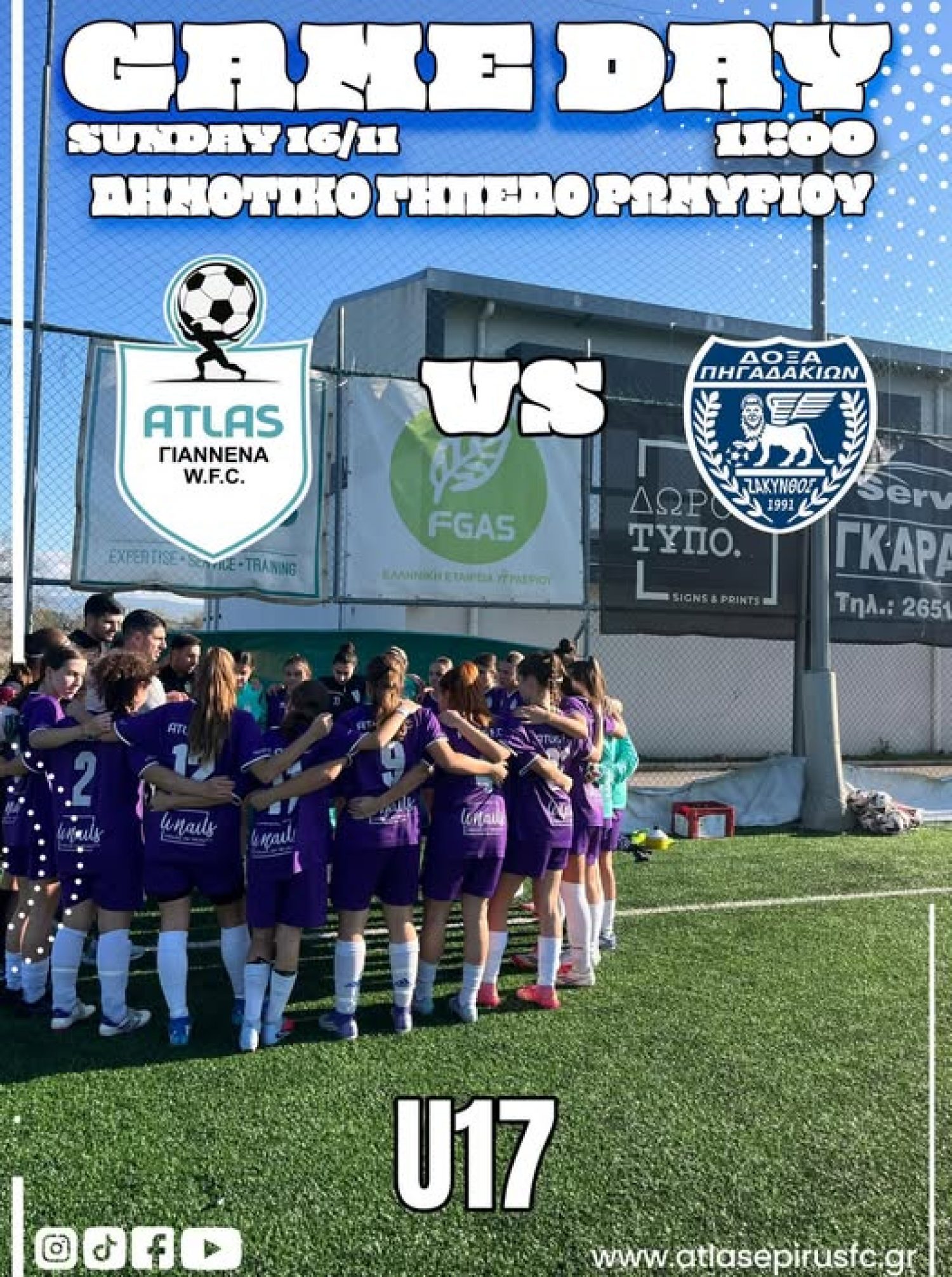 Την Κυριακή 16 Νοεμβρίου ξεκινάει η φετινή πορεία του Άτλα Ήπειρος WFC στο Πρωτάθλημα Κ17 Γυναικών.