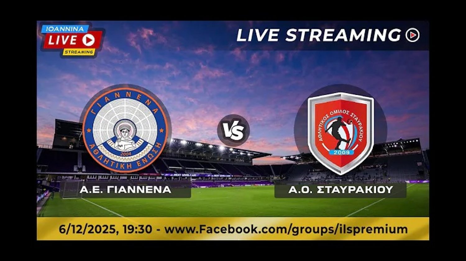 Παρακολουθήστε από το Ioannina Live, σε live streaming τον αγώνα, ΑΕ Γιάννενα-ΑΟ Σταυρακίου.