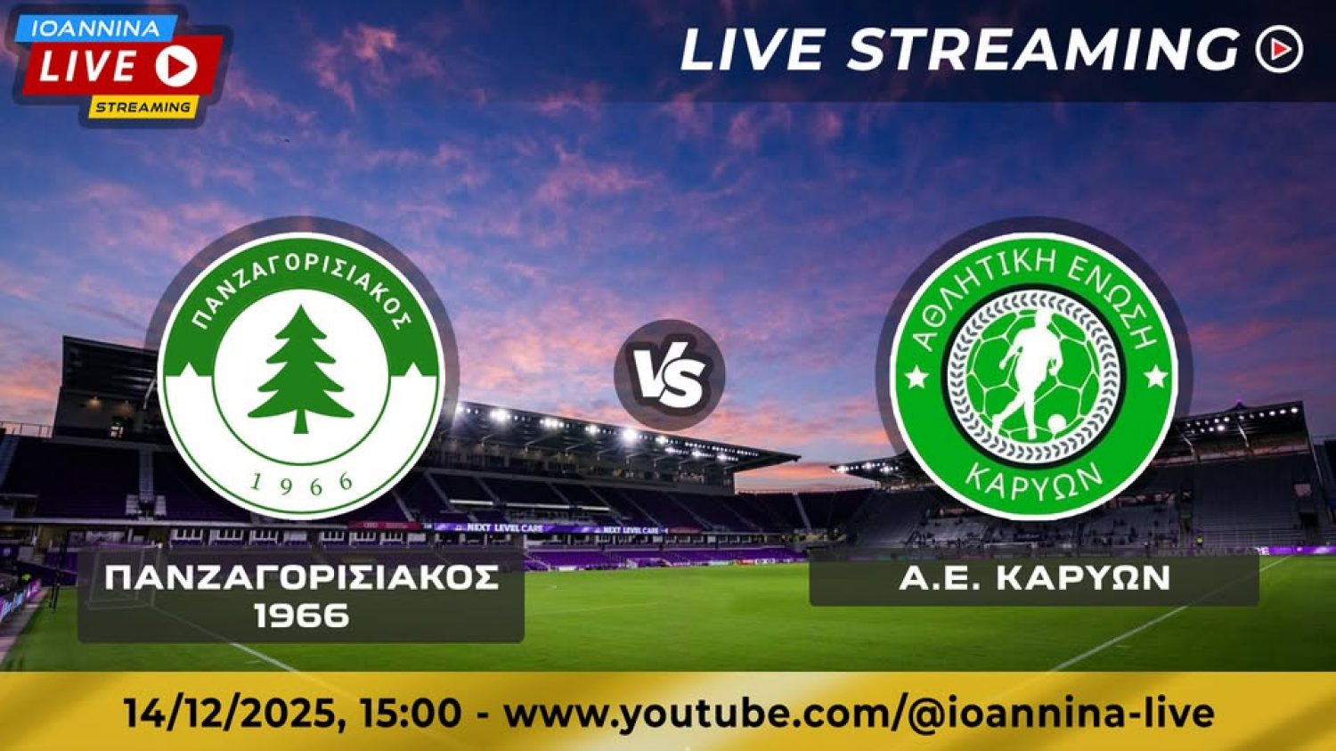 Παρακολουθήστε σε live streaming από το Ioannina Live, τον αγώνα Πανζαγορισιακός 1966-ΑΕ Καρυών.