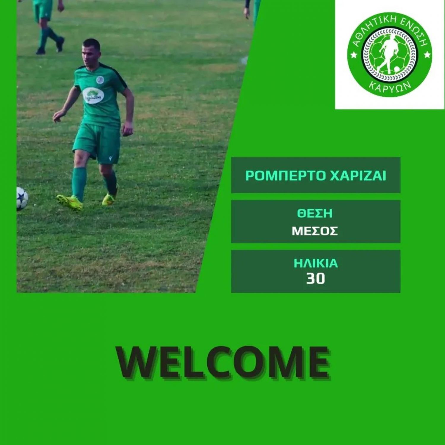Η ανακοίνωση: Ανακοινώνουμε την επιστροφή στην ομάδα ενός δικού μας παιδιού. Ξεκίνησε την καριέρα του απ'την ομάδα μας, ενώ έχει αγωνιστεί μεταξύ άλλων σε Τιτάν Λογγάδων και Πας Περιβλέπτου. Με την εμπειρία του και την ποιότητα του θα βοηθήσει πολύ την προσπάθεια μας. Καλώς ήρθες πίσω Ρομπέρτο