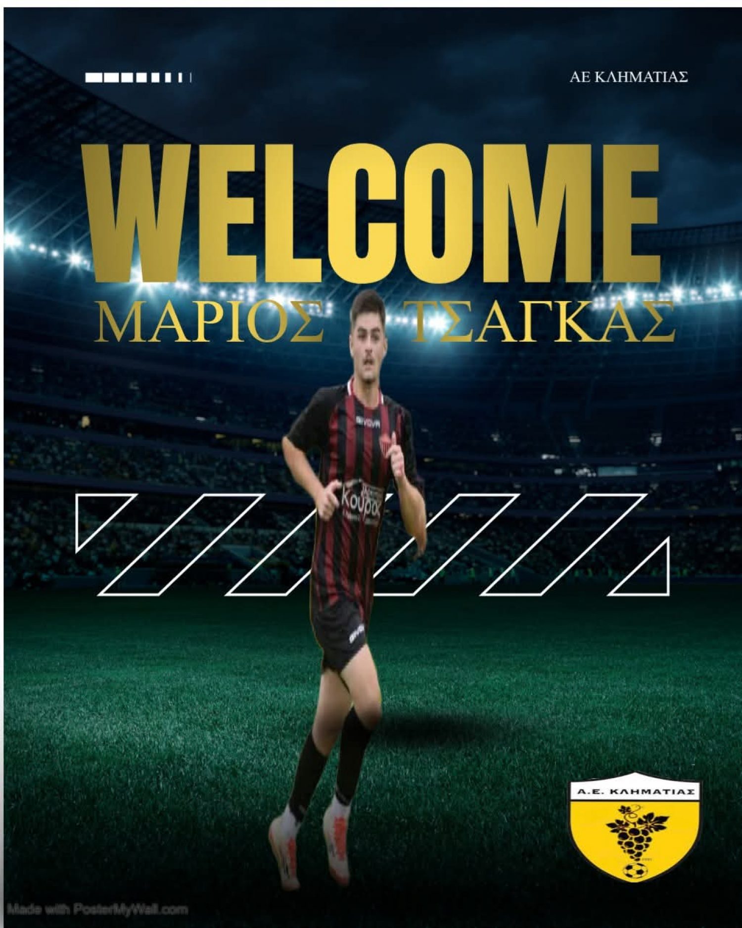Η ανακοίνωση: Η ομάδα μας ανακοινώνει την έναρξη της συνεργασίας της με τον νεαρό ταλαντούχο μέσο Μάριο Τσάγκα ο οποίος εντάσσεται στο ρόστερ μας από την ομάδα του Πωγωνάτου. Ο Μάριος θα αποτελέσει άλλη μία αξιόπιστη λύση στην μεσσαία γραμμή της ομάδας μας για το υπόλοιπο της αγωνιστικής περιόδου. Του ευχόμαστε υγεία και πολλές επιτυχίες με τη φανέλα της ομάδας μας!