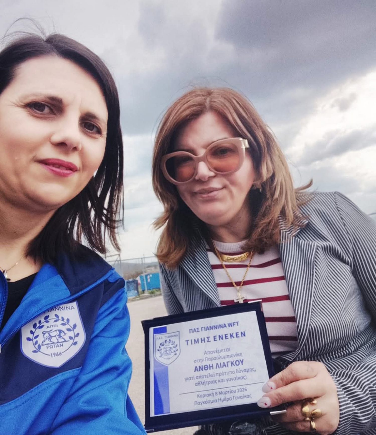 Την παραολυμπιονίκη Ανθή Λιάγκου βράβευσε η Ομάδα Ποδοσφαίρου Γυναικών στο πλαίσιο της Γιορτής της Γυναίκας.