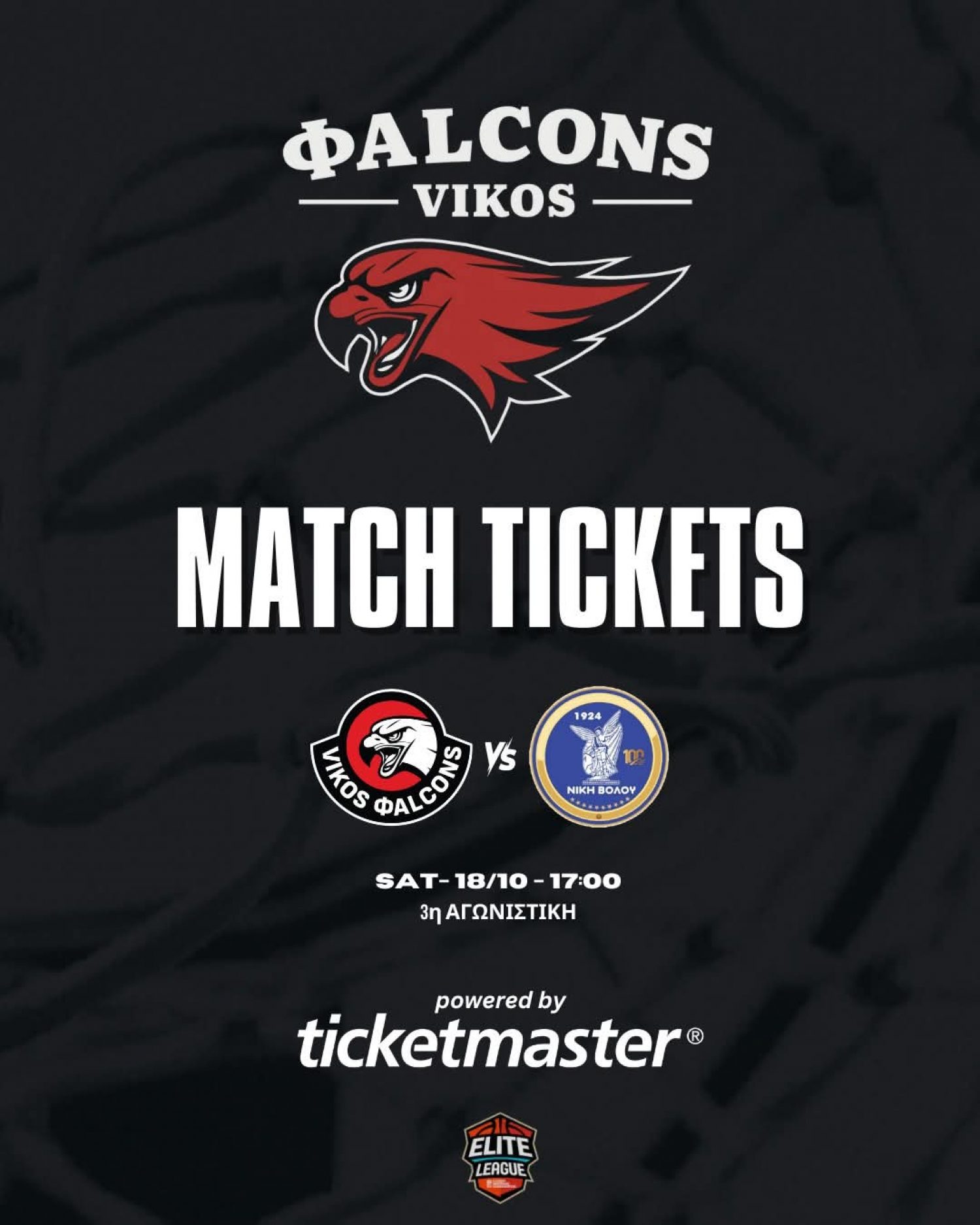 Στη διάθεσή των φιλάθλων είναι τα εισιτήρια του αγώνα Vikos Φalcons με τη Νίκη Βόλου.