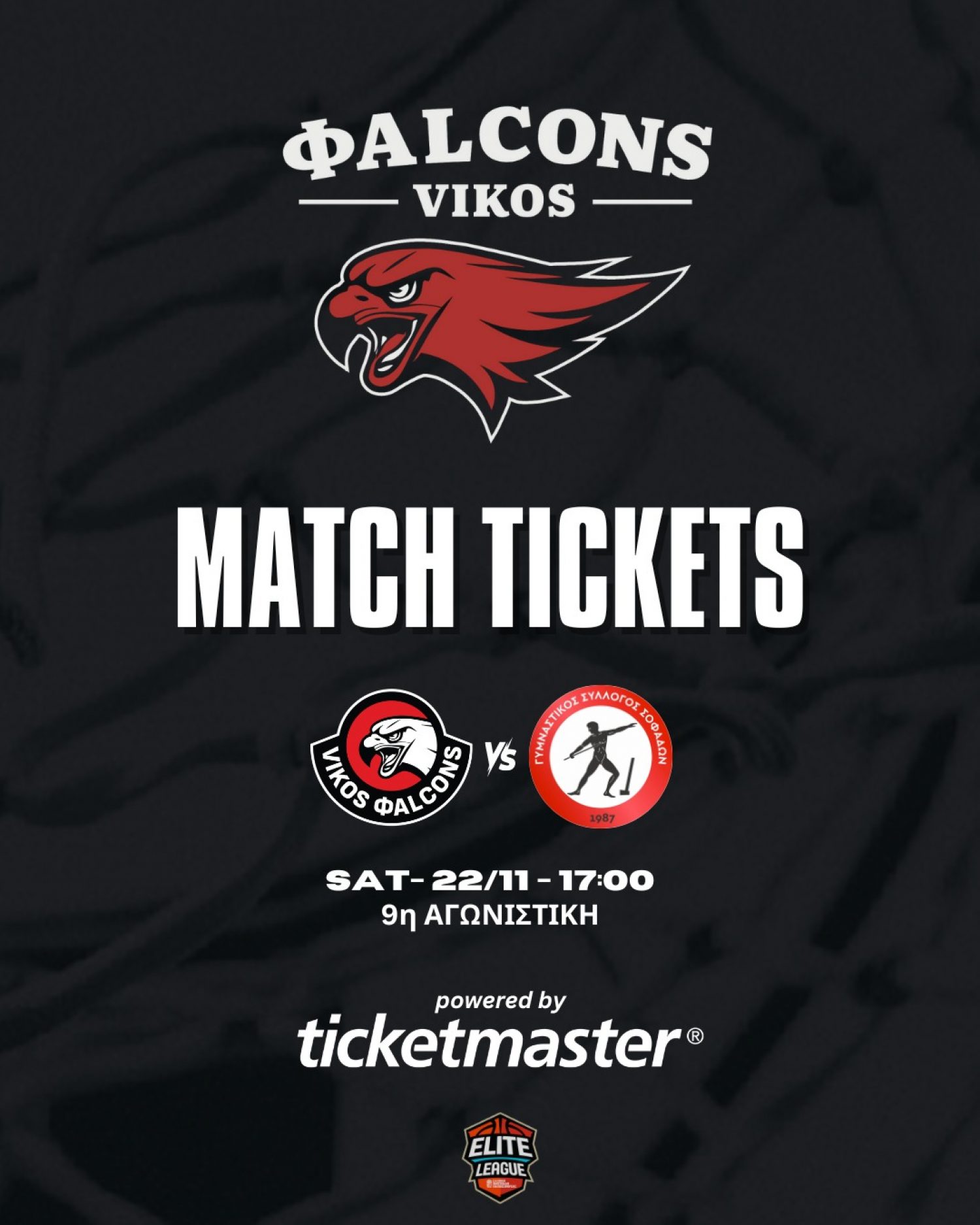 Διαθέσιμα για προπώληση τα εισιτήρια του αγώνα για την 9η αγωνιστική του πρωταθλήματος της Elite League 2025-26 μεταξύ των Vikos Φalcons και του ΓΣ Σοφάδων, που θα διεξαχθεί το Σάββατο 22 Νοεμβρίου στις 17:00 στο Νέο Κλειστό Γυμναστήριο Ιωαννίνων.