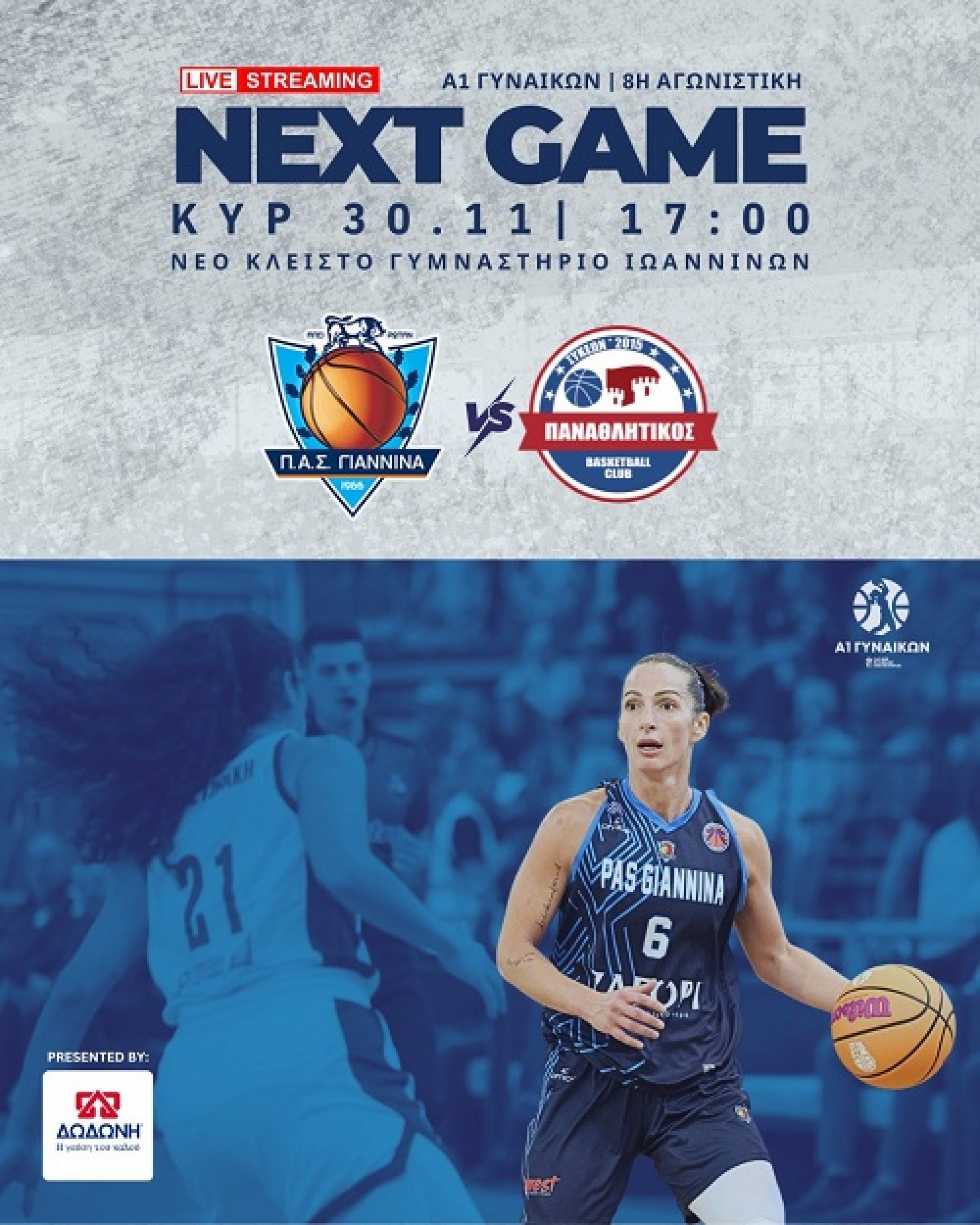 Ένα ιδιαίτερα σημαντικό ματς, δίνει την Κυριακή στις 17.00, στο Νέο Κλειστό Γυμναστήριο, ο ΠΑΣ Γιάννινα WBC, όπου για την 8η αγωνιστική της Α1 Γυναικών, φιλοξενεί τον Παναθλητικό.