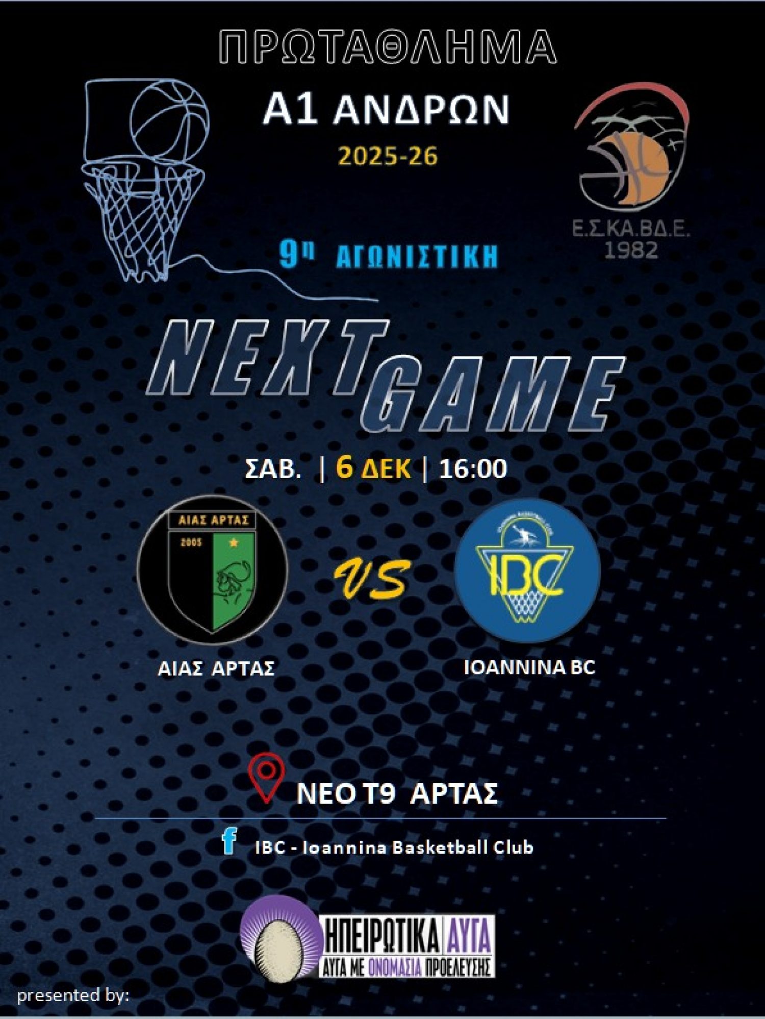 Παρακολουθήστε σε live streaming τον αγώνα, Αίας Άρτας-IBC, ΕΔΩ