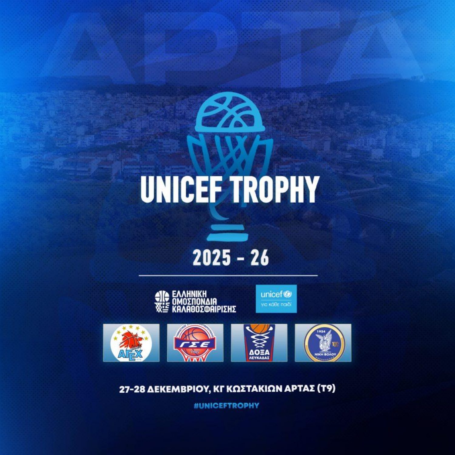 Το UNICEF Trophy επανέρχεται για τέταρτη σεζόν, σε μια διοργάνωση που έχει πλέον εξελιχθεί σε θεσμό, με τους τέσσερις διεκδικητές του τροπαίου (Νίκη Βόλου, ΑΓΕΧ, Ελευθερούπολη, Δόξα Λευκάδας), να δίνουν ραντεβού στην Άρτα και το Κλειστο Τ9 Κωστακίων το διήμερο 27-28 Δεκεμβρίου 2025.