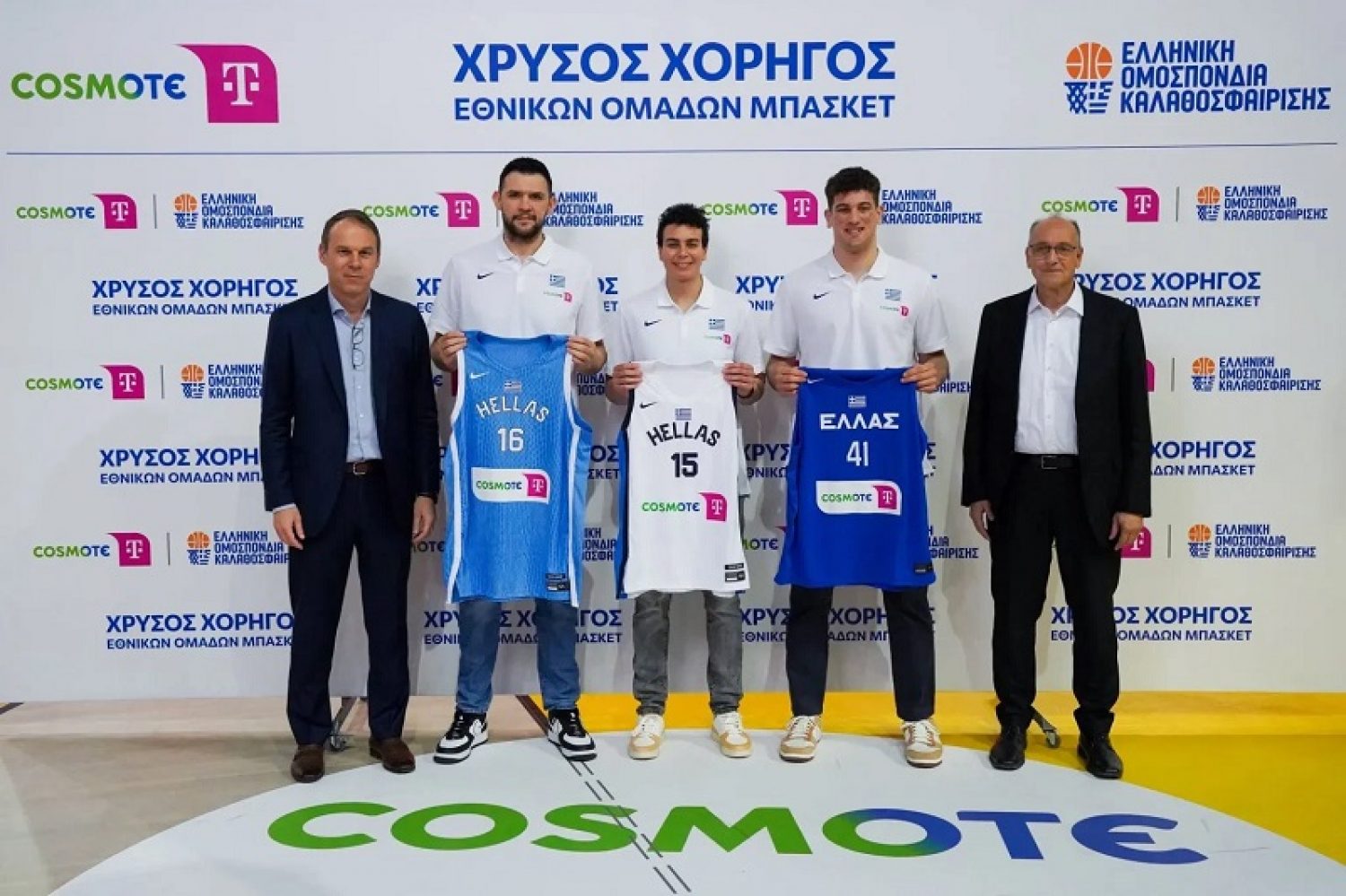 Χρυσός Χορηγός των Εθνικών Ομάδων Μπάσκετ (Ανδρών, Γυναικών και Νεών – U20, U18, U16) μέχρι και το 2030 θα είναι η COSMOTE TELEKOM, η οποία αναλαμβάνει και Επίσημος Χορηγός της Ελληνικής Ομοσπονδίας Καλαθοσφαίρισης (ΕΟΚ). Ως Χρυσός Χορηγός των Εθνικών Ομάδων Μπάσκετ η COSMOTE TELEKOM θα προβάλλεται στο μπροστινό μέρος της αγωνιστικής φανέλας.