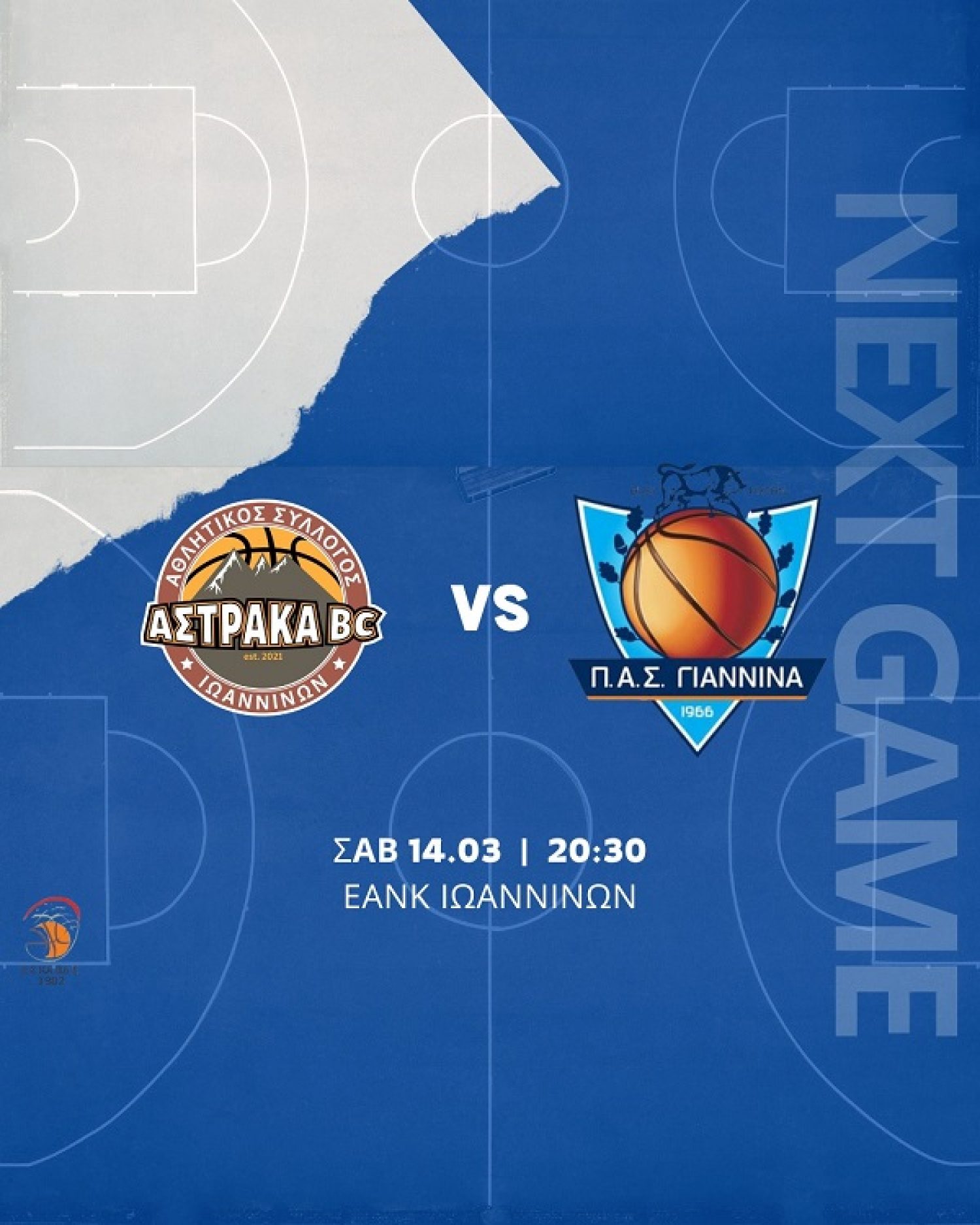 Η Αστράκα υποδέχεται τον ΠΑΣ Γιάννινα στο πλαίσιο της 20ης αγωνιστικής της Α1 ΕΣΚΑΒΔΕ.