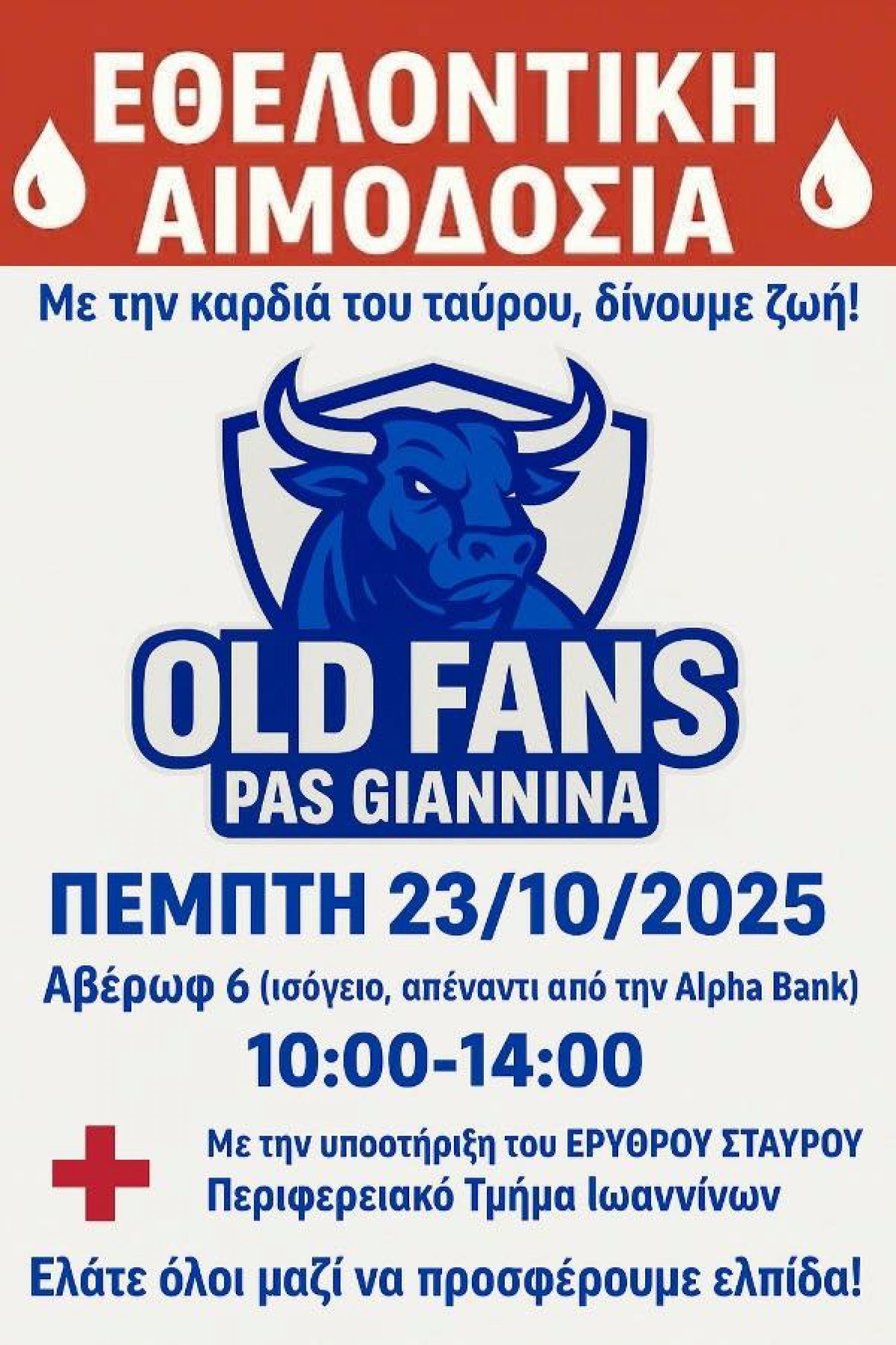 Οι Old Fans διοργανώνουν εθελοντική αιμοδοσία για να χαρίσουμε το πιο πολύτιμο δώρο στον συνάνθρωπό μας: Ζωή.