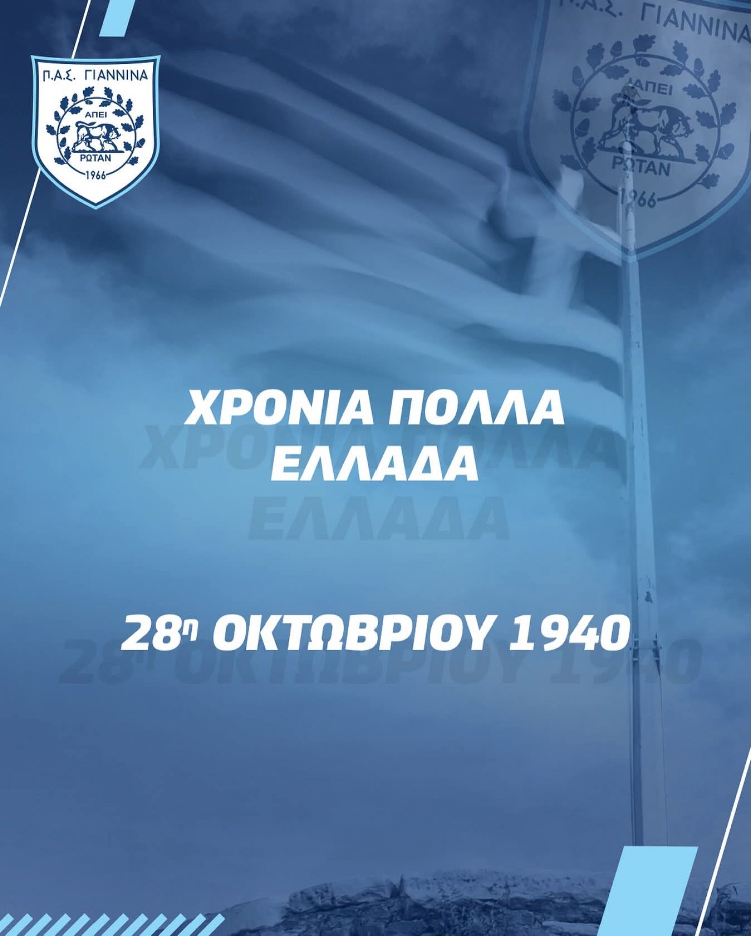 Για την επέτειο της 28ης Οκτωβρίου ευχήθηκε η ΠΑΕ ΠΑΣ Γιάννινα.