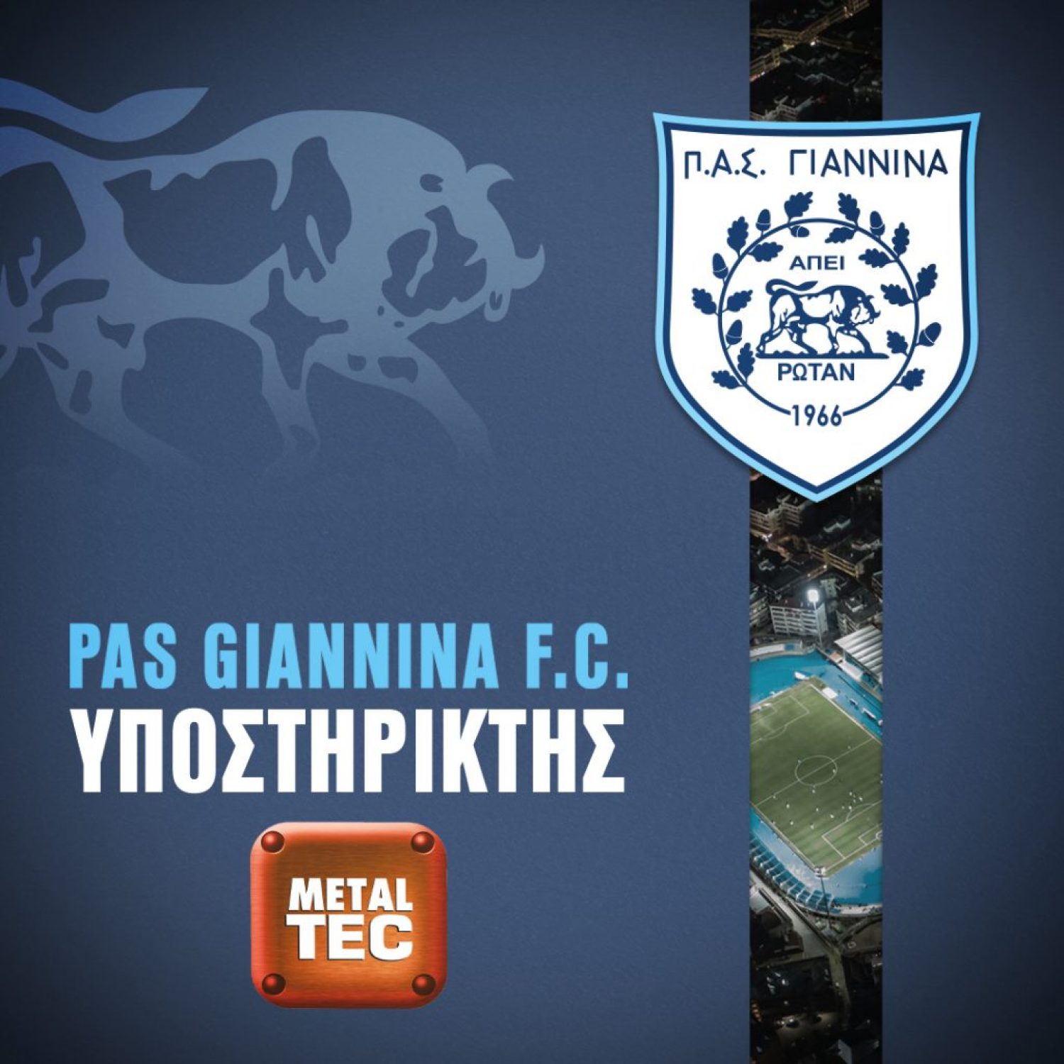 Η Π.Α.Ε. Π.Α.Σ. ΓΙΑΝΝΙΝΑ 1966 θέλει να ευχαριστήσει την εταιρία “METAL TEC” για την υποστήριξη της στη φετινή δύσκολη χρονιά της ομάδας μας συμμετέχοντας μέσα από το χορηγικό μας πρόγραμμα.
