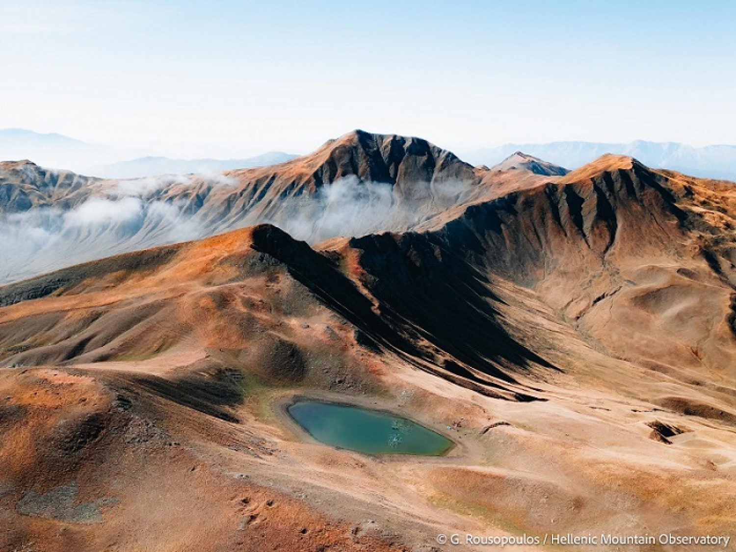 * Εικόνα: Η Δρακόλιμνη Γκιστόβα στον Γράμμο, όπου εγκαταστάθηκε ένας από τους τρεις αλπικούς μετεωρολογικούς σταθμούς. Πλάνο από drone. Φωτογραφία: Γ. Ρουσόπουλος.