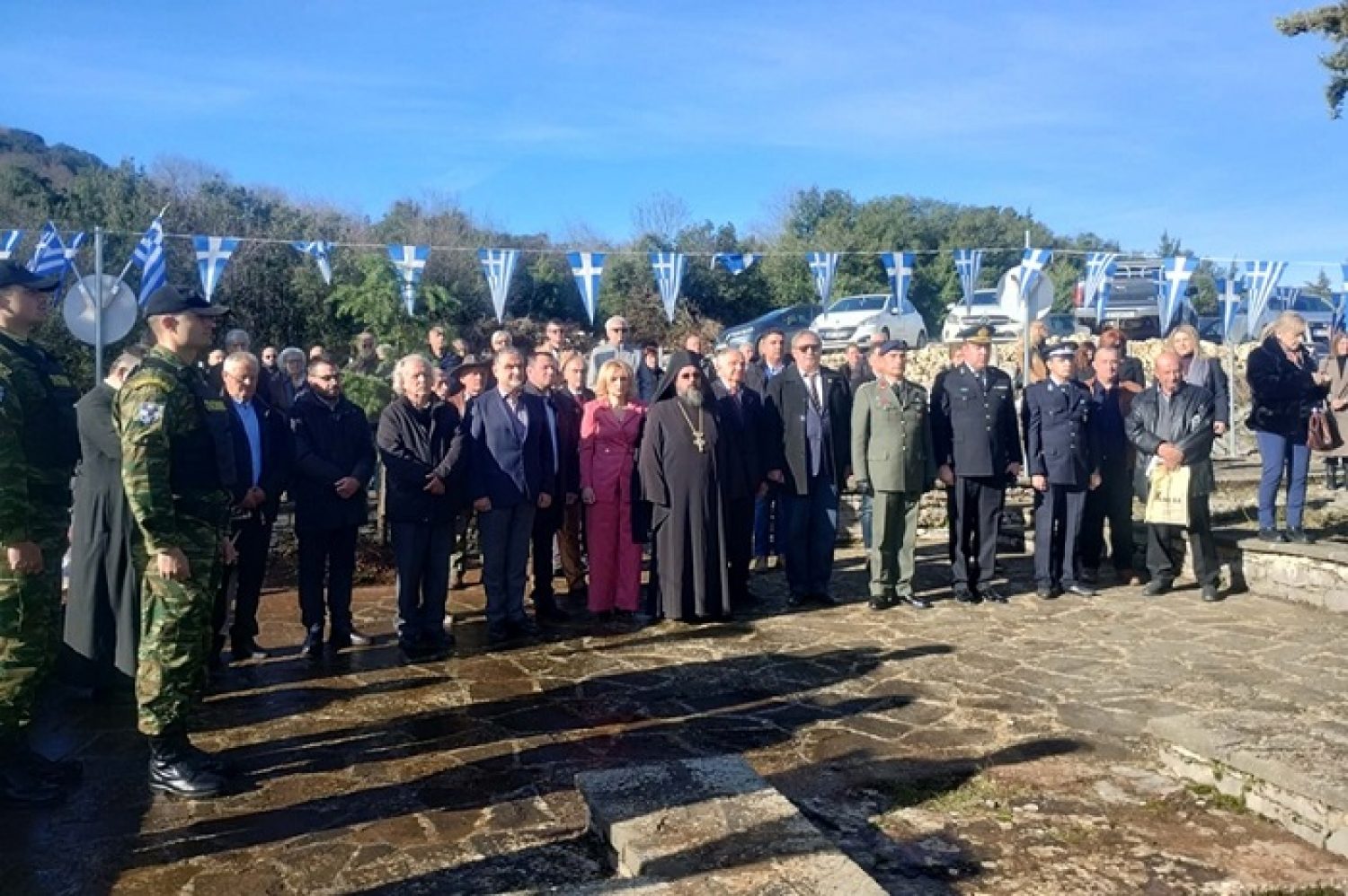 Στεφάνια κατέθεσαν ο βουλευτής Ιωαννίνων του ΠΑΣΟΚ–ΚΙΝΑΛ Γιάννης Τσίμαρης ως εκπρόσωπος της Βουλής, η αντιπεριφερειάρχης Ηπείρου Κατερίνα Αρλέτου, ο δήμαρχος Βορείων Τζουμέρκων Νίκος Βαΐτσης, εκπρόσωποι του Στρατού και των Σωμάτων Ασφαλείας, ο πρόεδρος Κοινότητας Αετορράχης Γιάννης Τσώνης, ο πρόεδρος του Συλλόγου Κατσάνων Ιωαννίνων Κίμων Χήτας και εκπρόσωποι οργανώσεων αποστράτων. Το παρών έδωσαν πολλοί κάτοικοι της Αετορράχης και των γύρω χωριών.