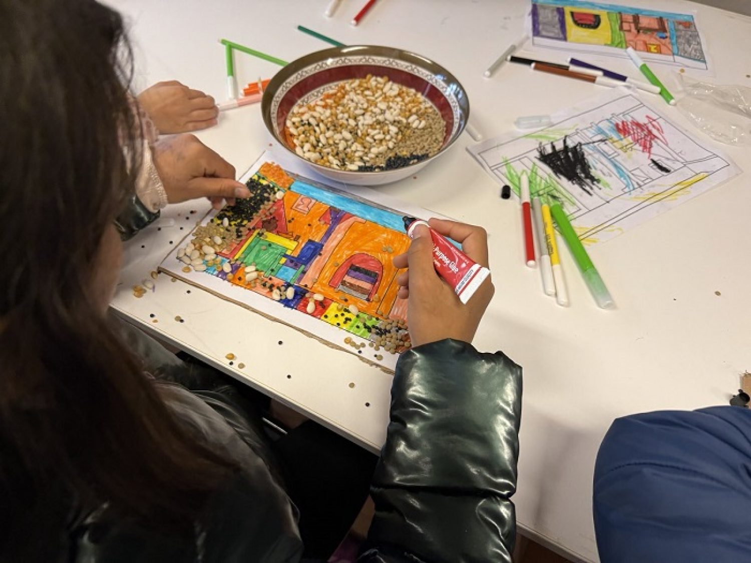Ακολούθησε θεατρικό παιχνίδι, όπου οι ομάδες των παιδιών αναπαρέστησαν σκηνές από τους πίνακες δημιουργώντας «παγωμένες εικόνες». Η δράση κορυφώθηκε στο Εργαστήριο Ψηφιδογραφίας, όπου τα παιδιά δημιούργησαν τα δικά τους έργα χρησιμοποιώντας όσπρια ως ψηφίδες, εμπνευσμένα από τις συνθέσεις του Γιάννη Κολέφα. Κάθε παιδί πήρε μαζί του το δημιούργημά του ως ενθύμιο της εμπειρίας.