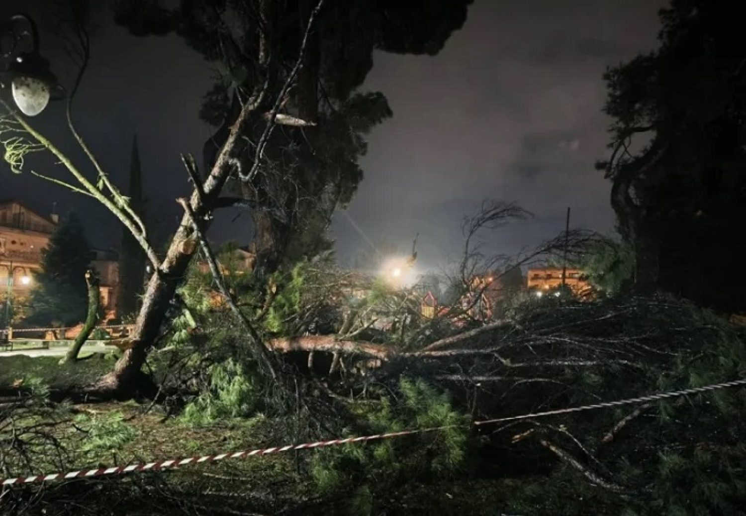 Ένα από τα πανύψηλα δέντρα στο πάρκο δίπλα στο Γηροκομείο κατέρρευσε το βράδυ της Δευτέρας, μετά και την τελευταία βροχόπτωση.