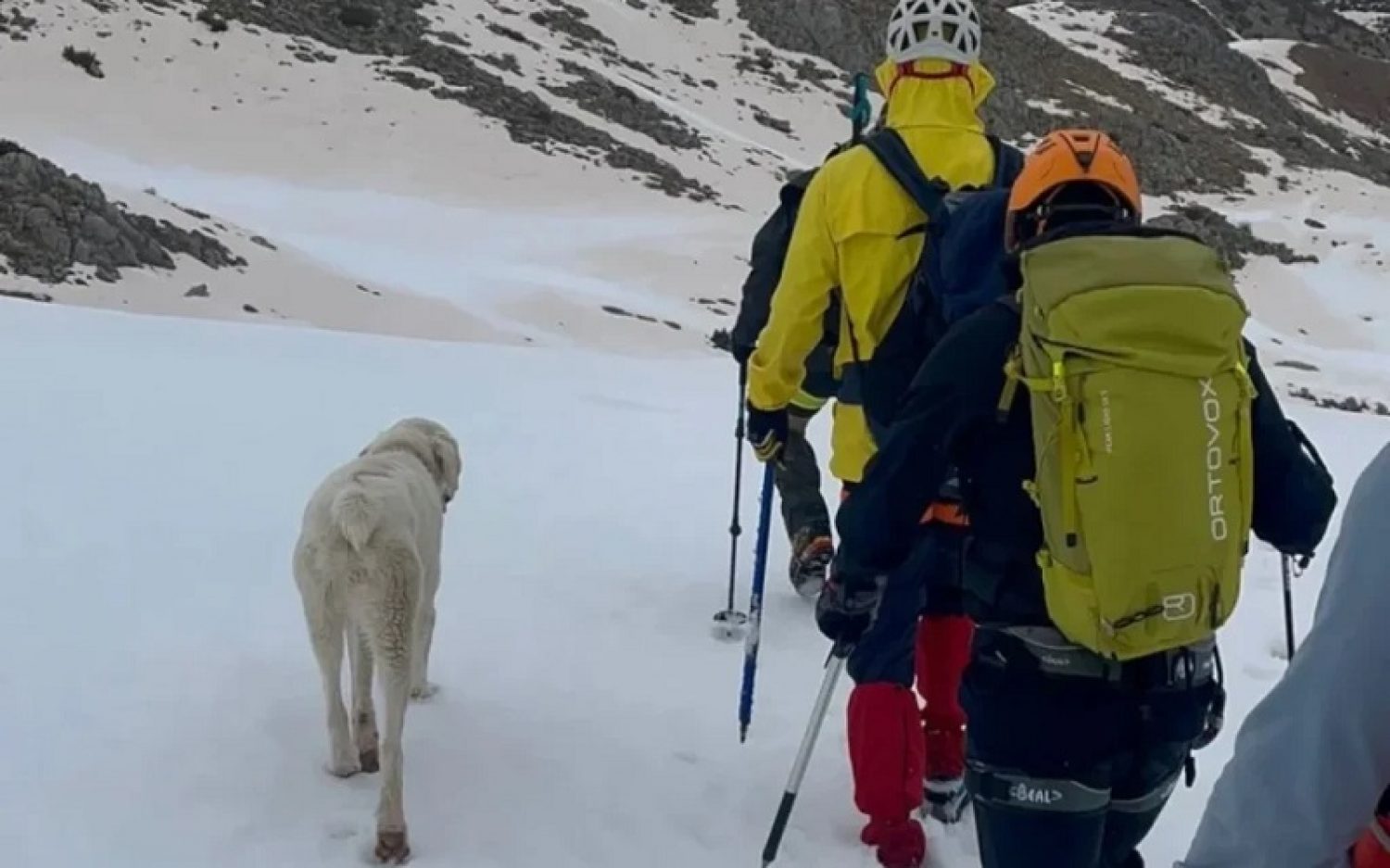 Η τύχη του λευκού τετράποδου άλλαξε όταν μια ομάδα Ελλήνων ορειβατών, που γνώριζε για την εξαφάνισή του, ξεκίνησε ανάβαση στην περιοχή. Παρά το γεγονός ότι το λευκό του τρίχωμα τον έκανε «αόρατο» στο χιόνι, οι κραυγές του για βοήθεια κινητοποίησαν τους ορειβάτες.