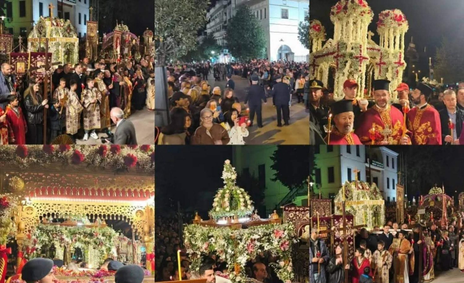 Οι Επιτάφιοι από τον Άγιο Νικόλαο Κοπάνων, την Περίβλεπτο, την Αγία Μαρίνα, τον Άγιο Γεώργιο, το Αρχιμανδρειό και τη Μητρόπολη, διέσχισαν τους δρόμους της πόλης ψάλλοντας τα Εγκώμια, για να καταλήξουν στο σημείο της συνάντησης.